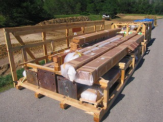 この時は瓦1枚1枚をぷちぷちで梱包してそのまわりに緩衝材を入れて周りをコンパネで梱包した。とても骨の折れる作業でした。
