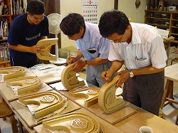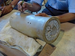 ニュージーランド行き鬼瓦の刻印を設計の袴田先生や国際交流の施主様に会社に来て頂き刻印して頂いた。