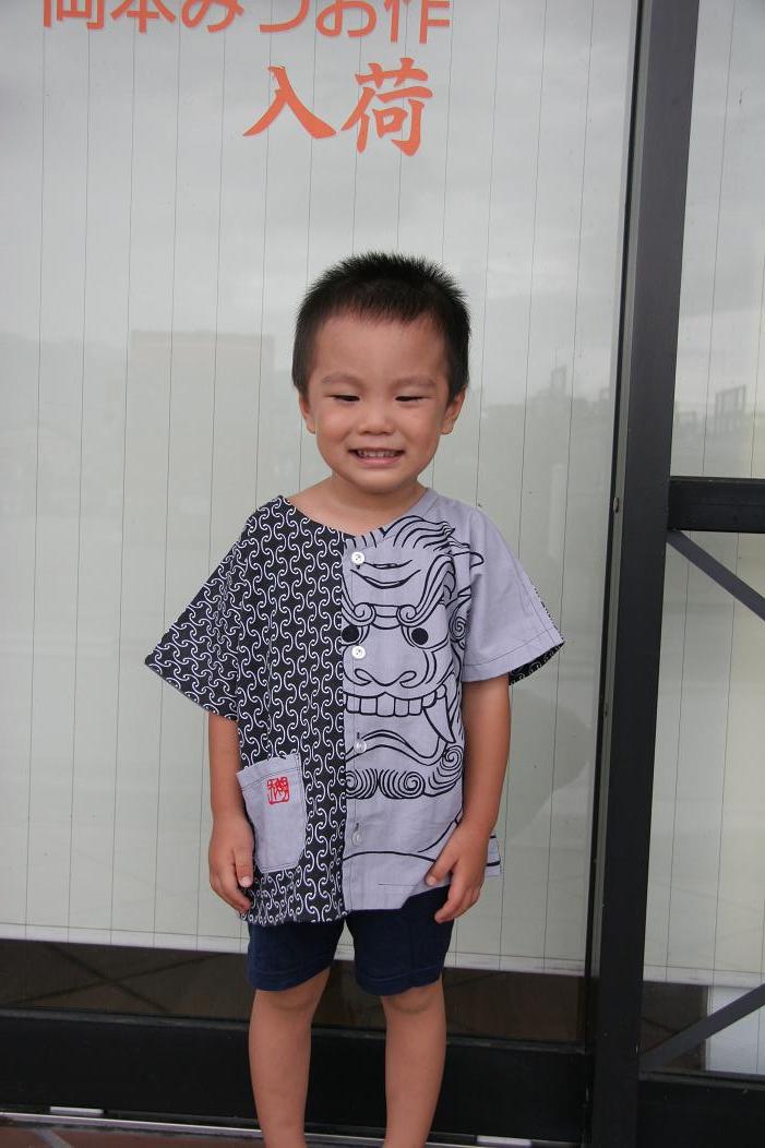シャツの生地は、手ぬぐいなので非常に涼しそうです。