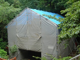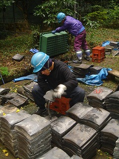 御世話になっております。神谷瓦店よりご紹介いただき、三○住○建設様と共に静岡県静岡市の久能山東照宮(重要文化財)神厩(うまや)の工事に御世話になっております。現在屋根より瓦を下ろして瓦を水で一枚一枚洗っております。