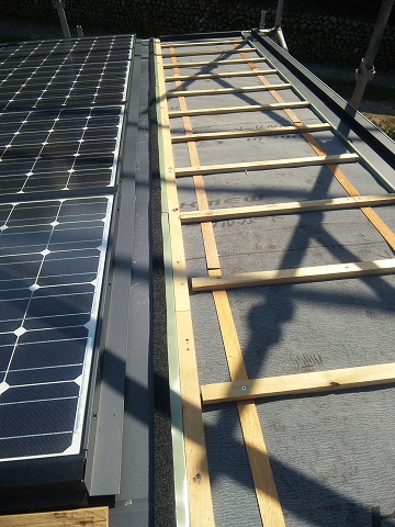 今回はスッキリ仕上げる為に太陽光部分の谷には袖瓦を使用しません。