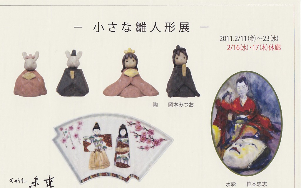 弊社代表の古くからの友人であります、陶人形作家 阿部和唐氏のお弟子さんであります、岡本みつお氏の作品展が藤枝市岡部町三輪646-11「ギャラリー未来」にて開催されております。