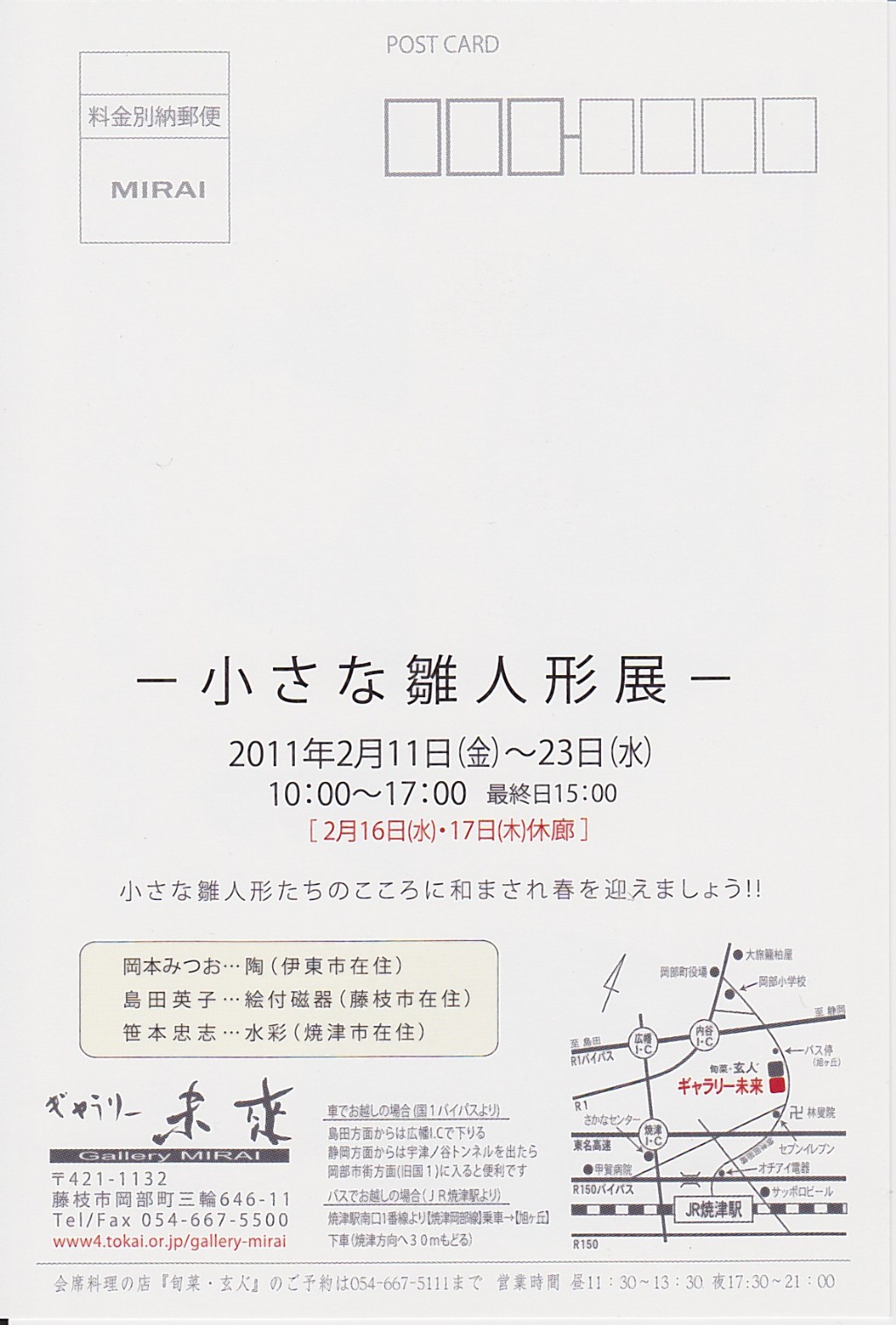 10:00~17:00 最終日15:00 (2月16日(水)・17日(木)休廊)