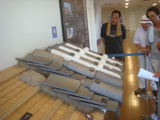 写真のように姫路城の施工方法も模型にて確認できます。弊社社員も真剣に見学しておりました。