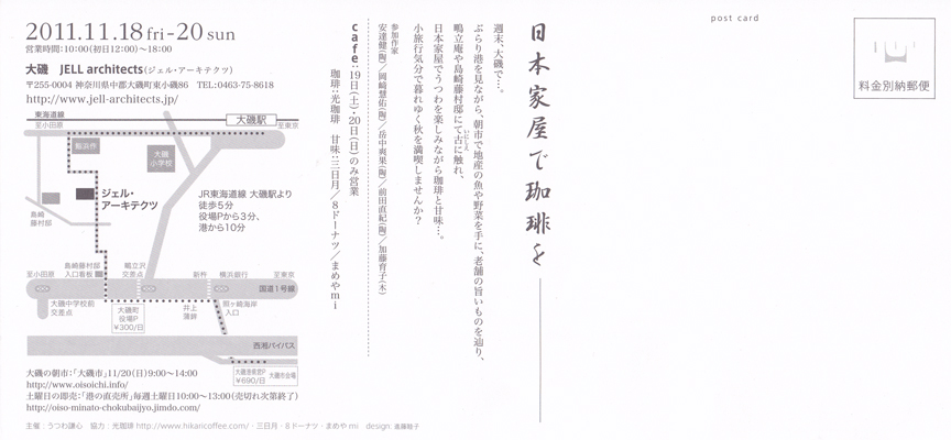 会場 大磯 JELL architects(ジェル・アーキテクツ) 神奈川県中郡大磯町東小磯86 TEL 0463-75-8618