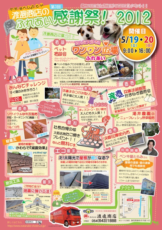 今年は、なんと「ナンバペット美容学院静岡分院様」のご協力により、多数のワンコや、ワンコの飼い方などの相談会も開催しちゃいます。前回大好評だった淡路島産のたまねぎを始め、瓦の砂利(シャモット)も販売させていただきます。