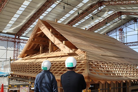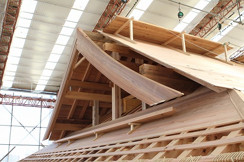 現在建て方工事終了し、屋根の下地工事中です。素屋根が掛けられ外からでは内部が見ることができません。静岡市より資料をいただきましたので以下にまとめました。