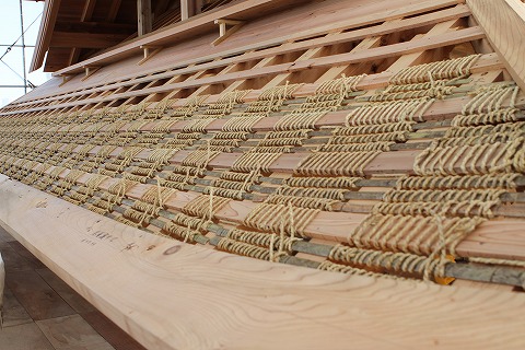 軒先の垂木に漆喰を施す為、先行して野地下に小舞をいれておりました。その後、野垂木を入れ野地をせこうするそうです。
