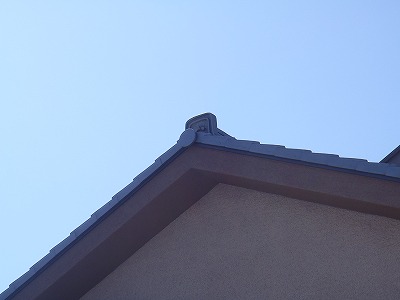 鬼に入れた紋は、結び文といって、縁を結ぶなどの意味もあり、大変縁起が良い紋です。棟積みは目透かし工法にしてスッキリ仕上げました。
