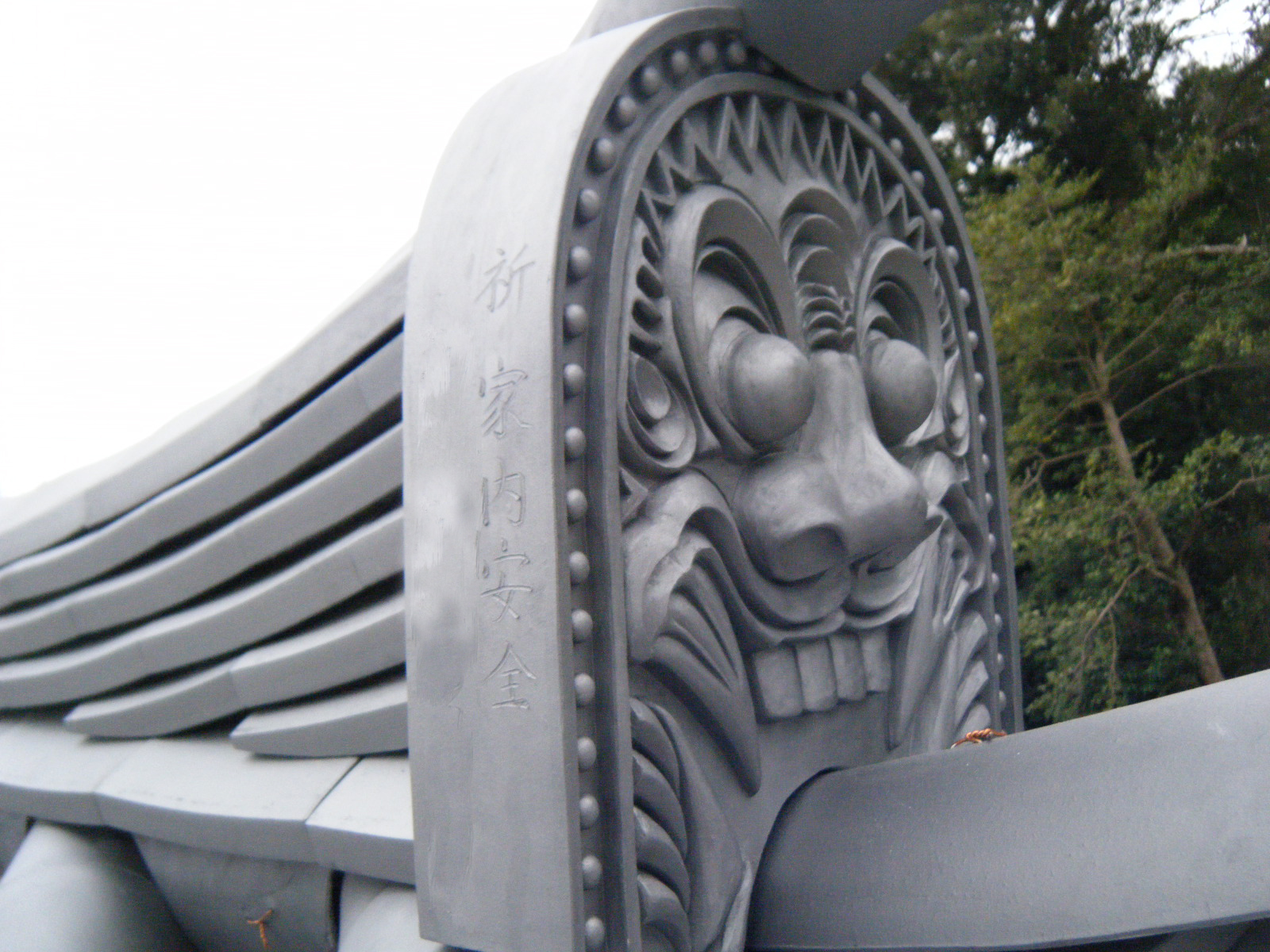 鬼瓦は古代鬼面を採用しております。弊社の原川が製作し焼き上げました。へら書きの様子はこちら