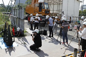 鯱の取り付け、多くの報道陣が駆けつけました。