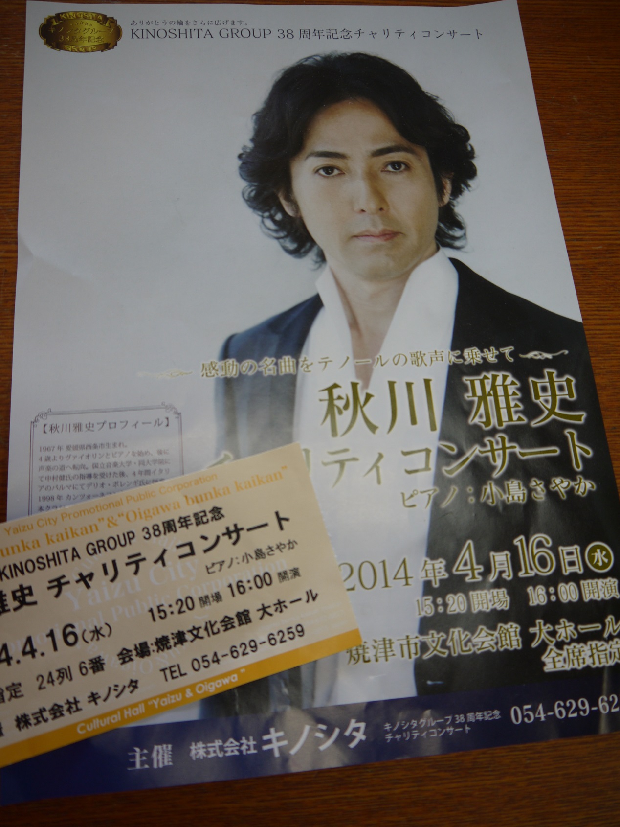 昨日、㈱キノシタ様の38周年記念秋川雅史チャリティコンサートに行ってきました。ふと忙しい日々を忘れてしまうような心安らぐコンサートでした。