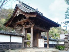 山門は、慶安四年(一六五一年)に建築され、屋根は檜皮葺でありましたが、明治二十二年(一八八九年)に現在の瓦葺に改められたそうです。清見寺所蔵の冊子「巨龜山旧雑記」には、山門の設計は、左甚五郎の弟子で、釘を一本も使ってないのが、この山門の特徴であると記されています。