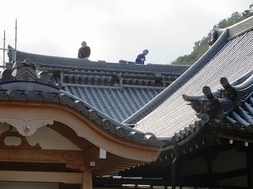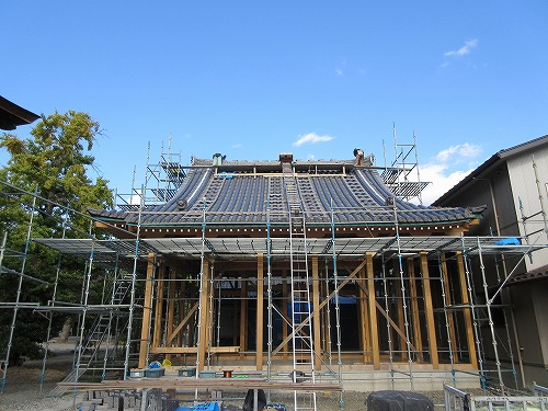 手前右にみえるのは平成3年に工事した本堂(弊社施工)20年以上たちますがほとんど異常がみられませんでした。