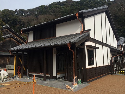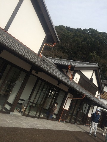 藤枝市の市の仕事でもあります、内野本陣の店舗棟の工事が終了しました。内野本陣は岡部宿大旅籠柏屋さんの隣の建物です。今回淡路瓦を使用し美しい色のしあがりです。