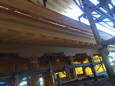 軒の納まりが美しいですね。屋根は銅板葺きです。駿府城でもお世話になった藤田社寺さんが受注されております。