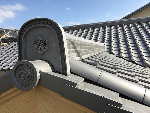 焼津市の孤雲院さんの客殿屋根工事が完成いたしました。鬼瓦には五七桐の寺紋を鬼瓦に入れ製作致しました。瓦は淡路島の昭和窯業さん大変綺麗です!