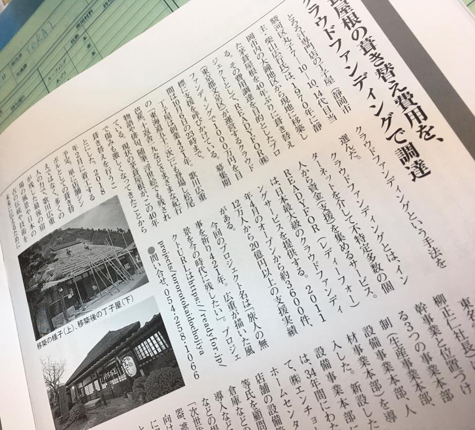 静岡ビジネスレポートのカンパニーファイルに取材して頂きました。かつては、日本で3番目の瓦生産量だった静岡、現在鬼瓦製造し瓦工事をする企業は、県内弊社のみとなってしまった。伝統文化継承の為にも頑張らなくては! 丁子屋さんもクラウドファンディングで茅葺の葺き替え、伝統文化を紡ぐ活動って本当に嬉しいですね!